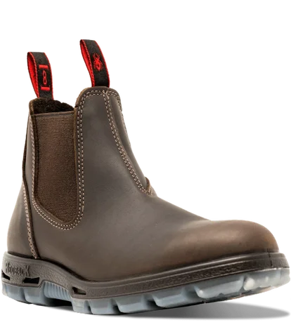 Een originele Redback dealerlaars (Chelsea-stijl) met een zachte en gripvaste dempende zool, een bovenwerk van volnerf leer en een fantastische anatomische voetondersteuning.